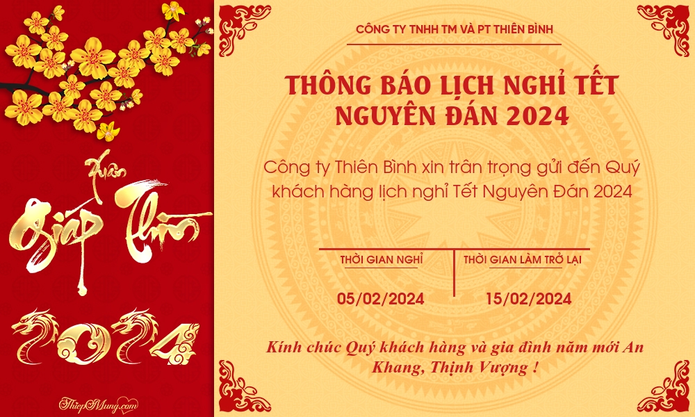 Thông báo lịch nghỉ tết Nguyên Đán 2024